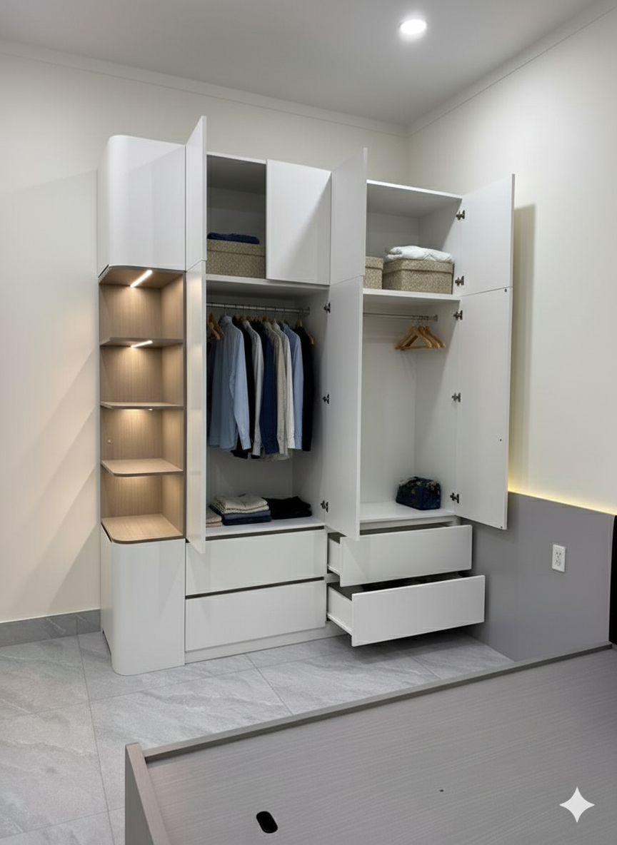 - 1 tủ 2m x 2m6 x 55cm (có đèn led)