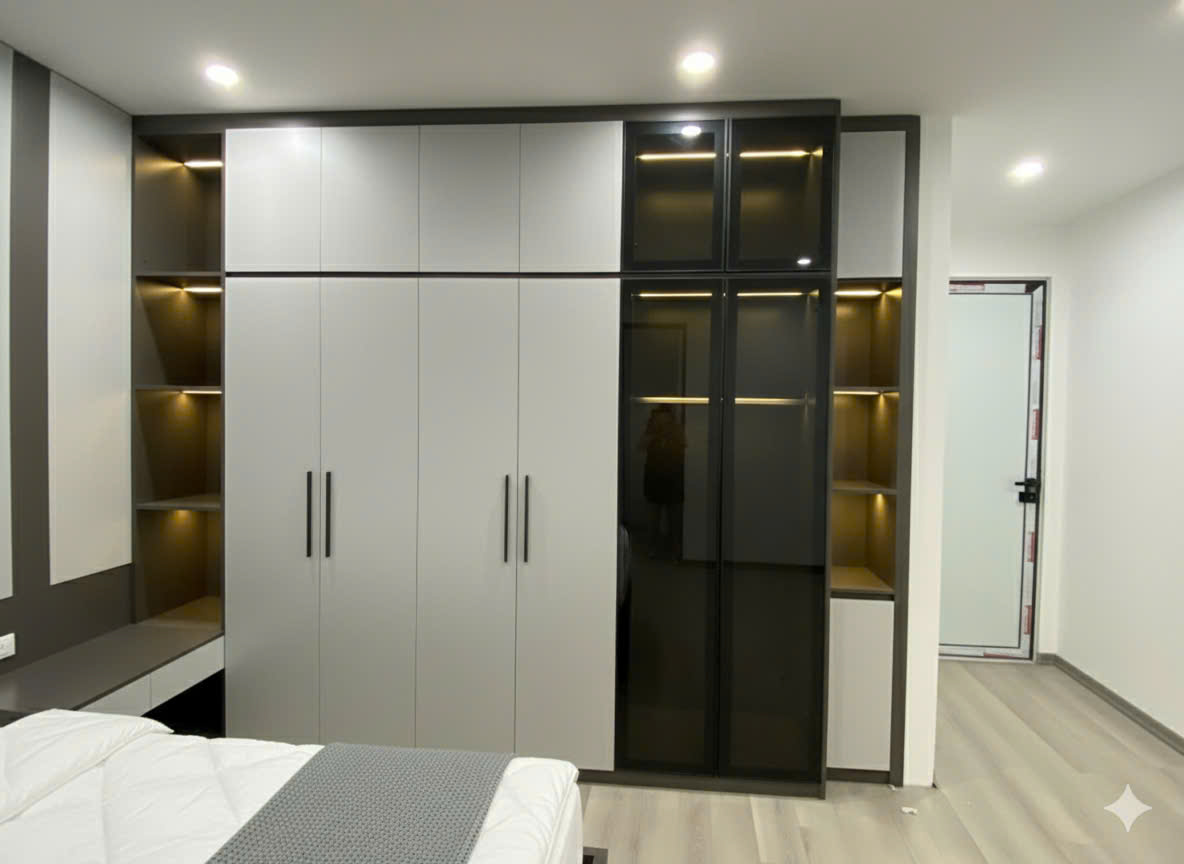 - 1 tủ 3m2 x 2m6 x 55cm ( chưa gồm đèn led )