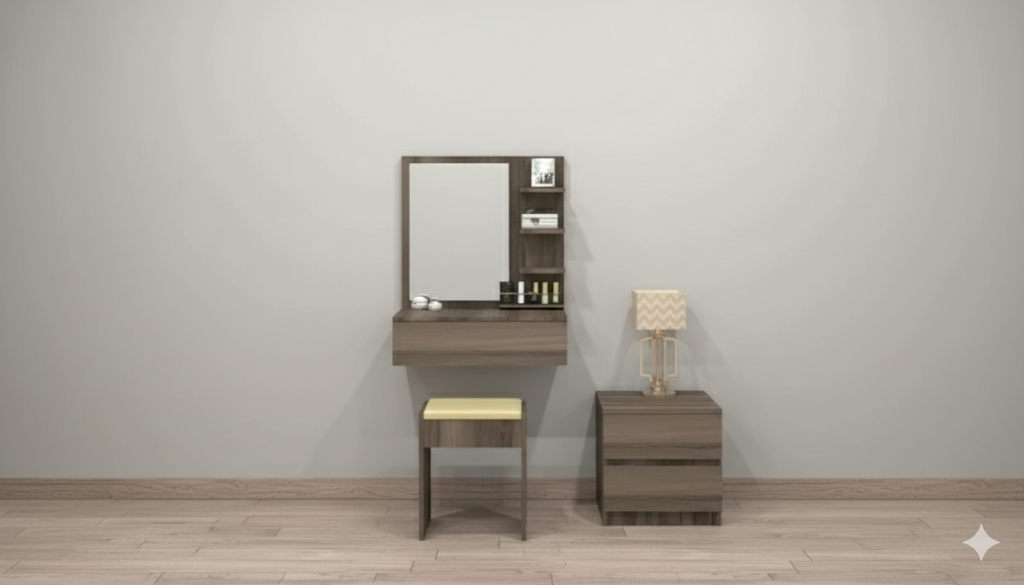 - 1 bàn trang điểm treo 60cm + đôn ngồi