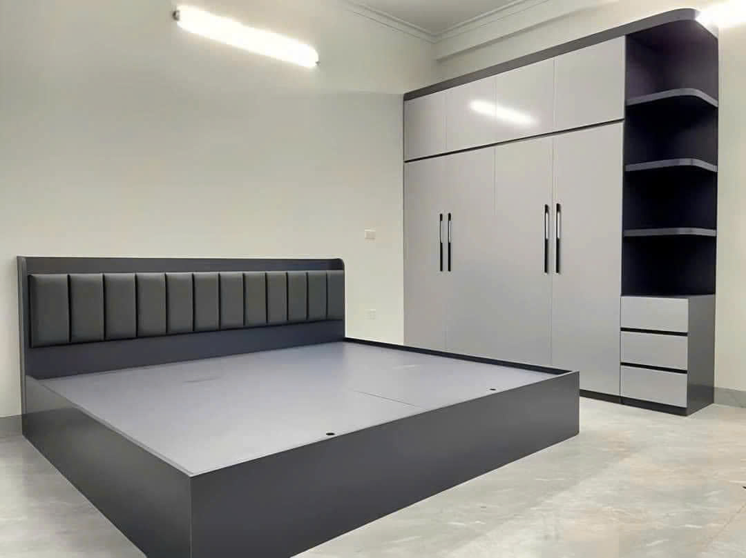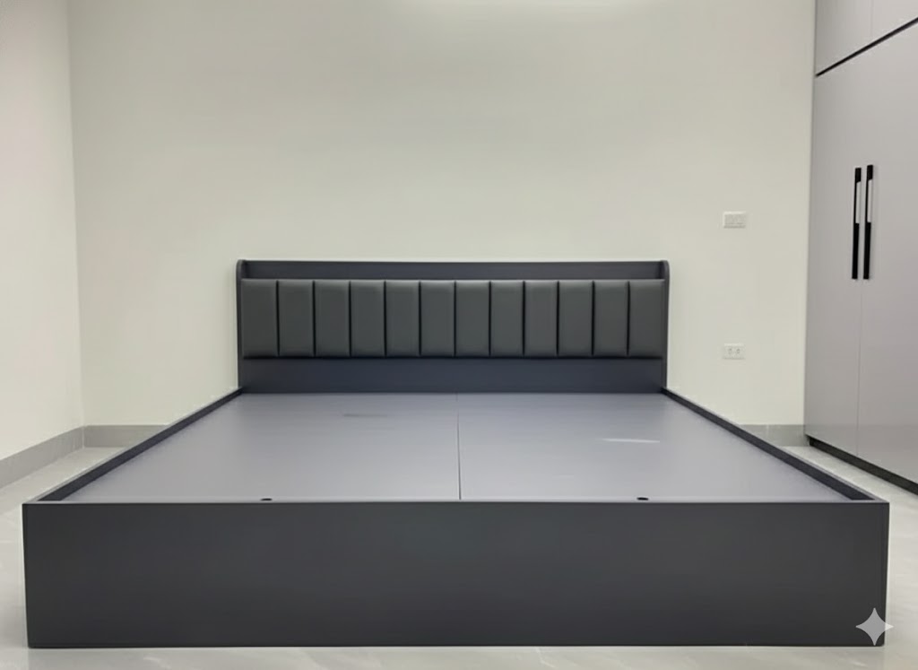 Thiết kế: Giường bệt (platform bed) hoặc giường hộp hiện đại.
