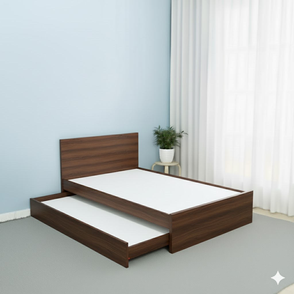 Giường kéo gỗ MDF (Medium-Density Fibreboard) là loại giường được làm từ gỗ công nghiệp, kết hợp với một phần giường phụ có thể kéo ra vào linh hoạt. Thiết kế này giúp tối ưu hóa không gian, đặc biệt phù hợp với các căn hộ nhỏ, phòng trọ hoặc phòng ngủ của trẻ em. Khi không sử dụng, giường phụ được giấu gọn gàng bên dưới giường chính, tạo không gian sinh hoạt rộng rãi hơn.