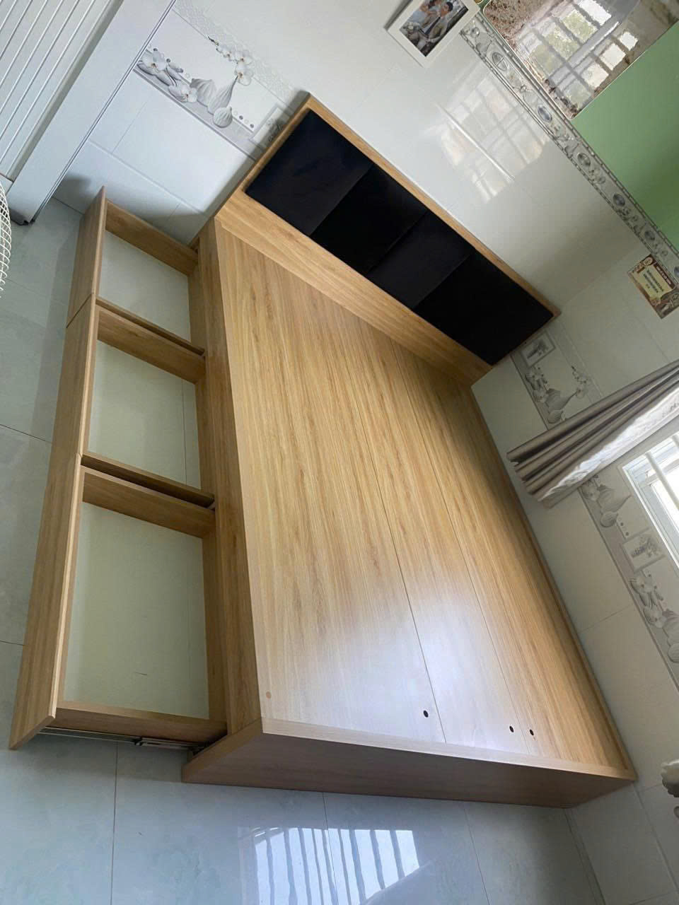 - Giường ngủ gỗ MDF thông minh có 3 ngăn kéo kèm nệm đầu giường