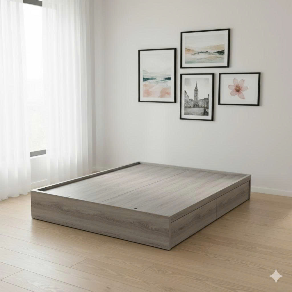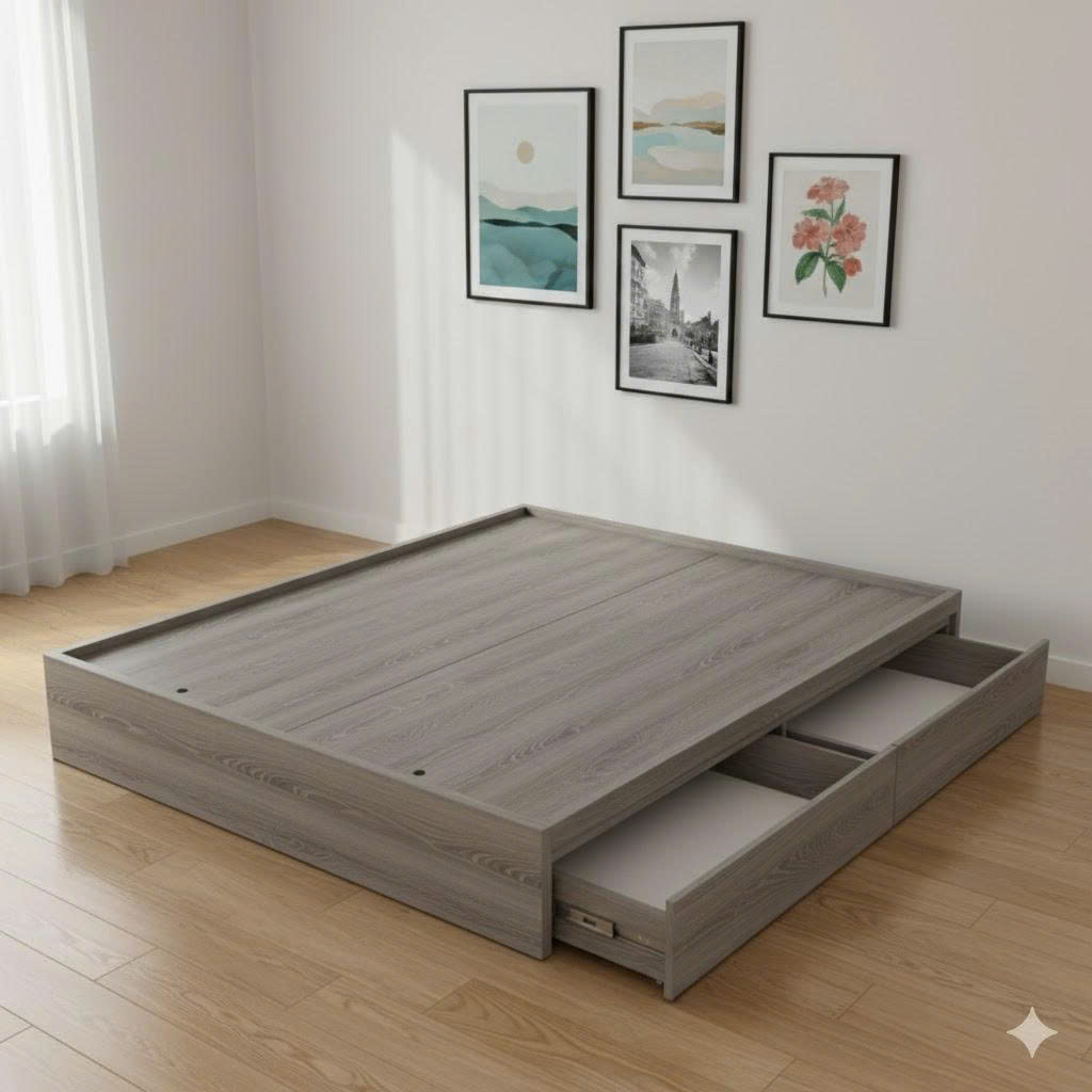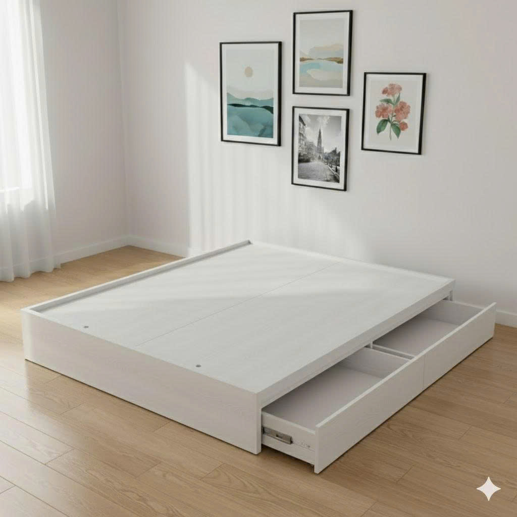 Điểm nổi bật nhất của mẫu này là 2 ngăn kéo lớn bên hông, giúp bạn dễ dàng cất giữ chăn, gối, quần áo hay vật dụng cá nhân – tiết kiệm diện tích tối đa cho phòng ngủ nhỏ.