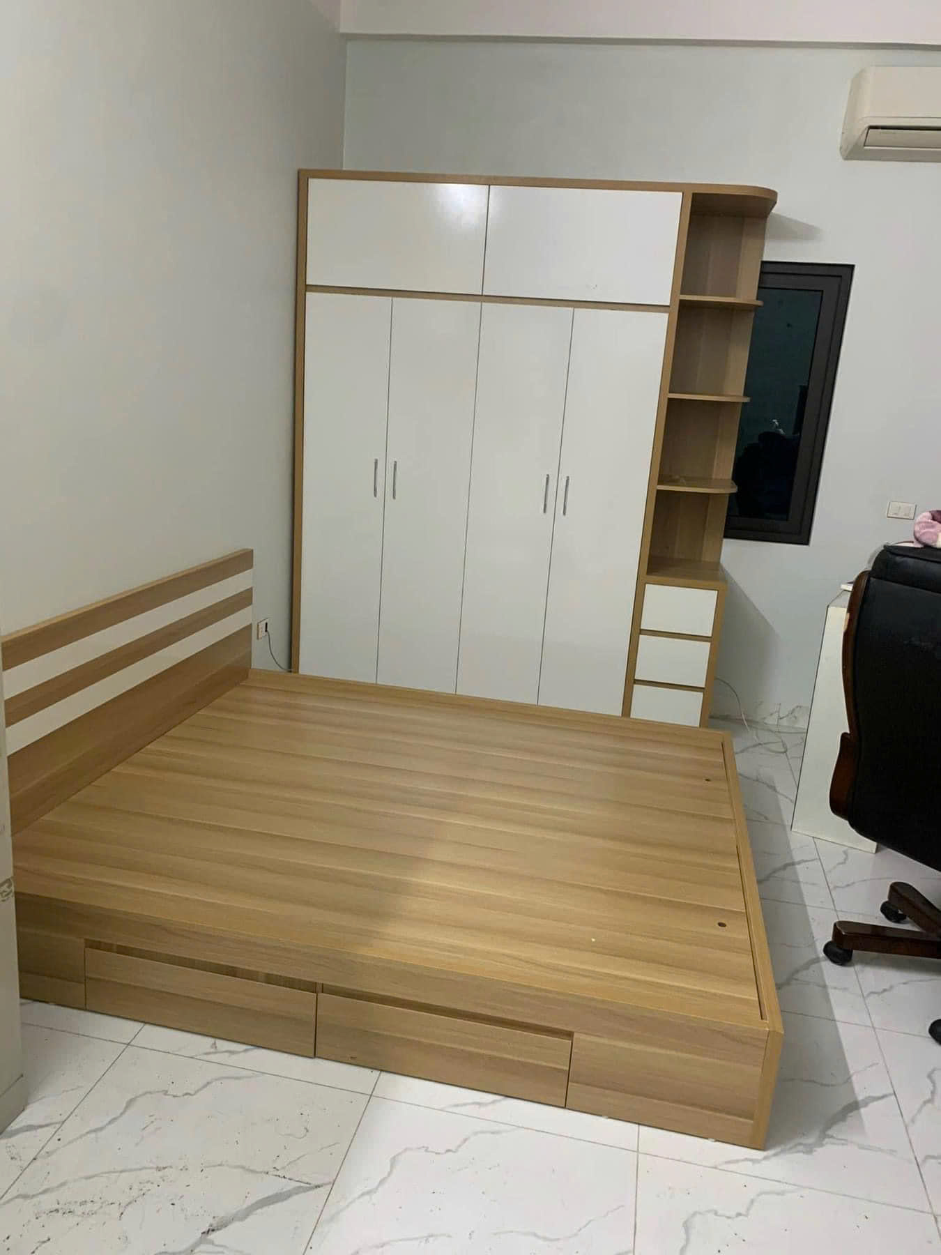 - Giường ngủ gỗ MDF có 2 ngăn kéo và sọc đầu giường