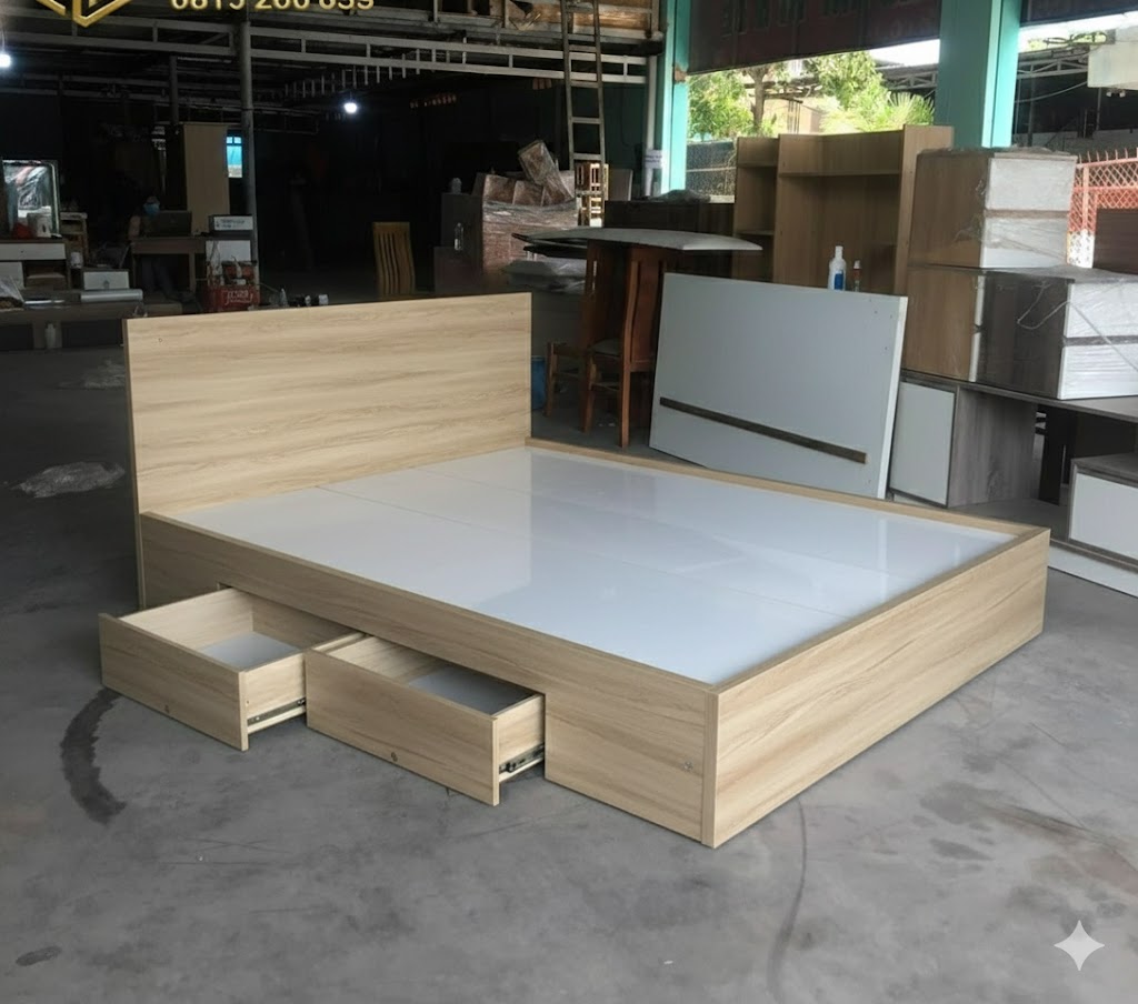- Giường ngủ gỗ MDF có 2 ngăn kéo