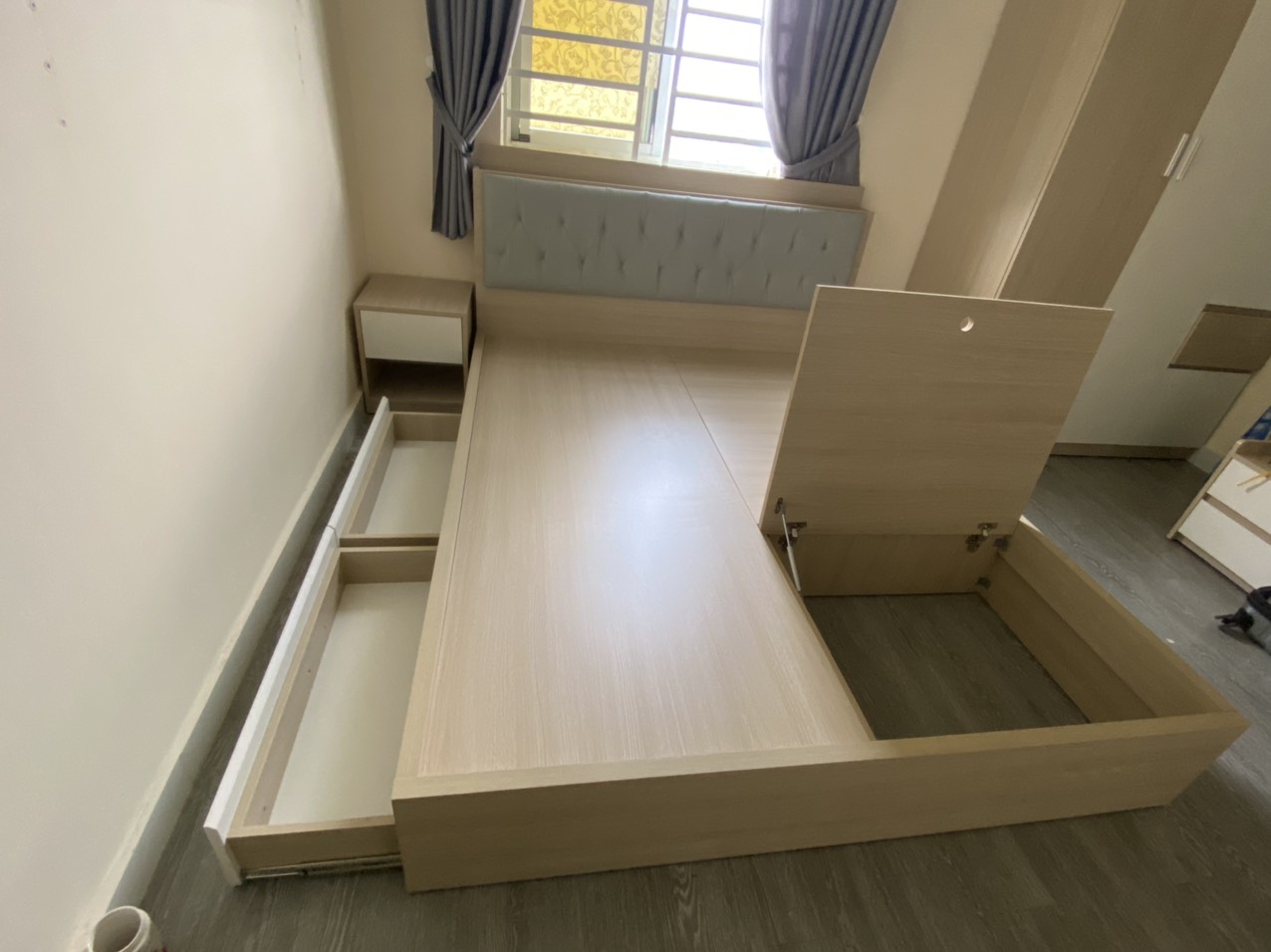 Tối ưu hóa không gian lưu trữ: Với ba ngăn kéo dưới giường, bạn có thể dễ dàng lưu trữ chăn, gối, quần áo hoặc các vật dụng cá nhân khác mà không chiếm dụng diện tích phòng. Điều này đặc biệt hữu ích cho những phòng ngủ có diện tích hạn chế.