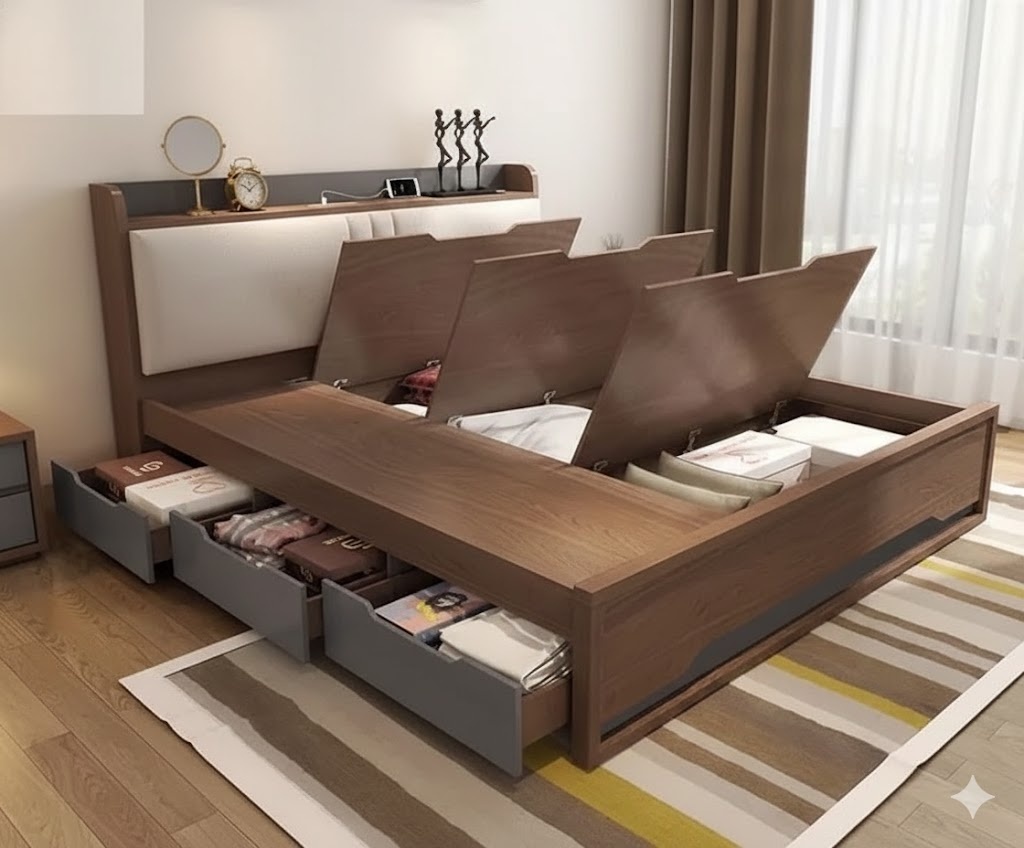 Giường ngủ cánh lật 3 ngăn kéo kết hợp giữa thiết kế thông minh và tính năng tiện ích, mang lại nhiều ưu điểm cho không gian phòng ngủ của bạn: