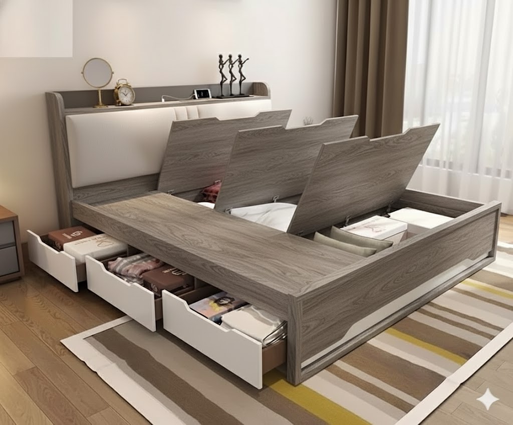 - Giường ngủ gỗ MDF thông minh có 3 ngăn kéo 3 cánh lật