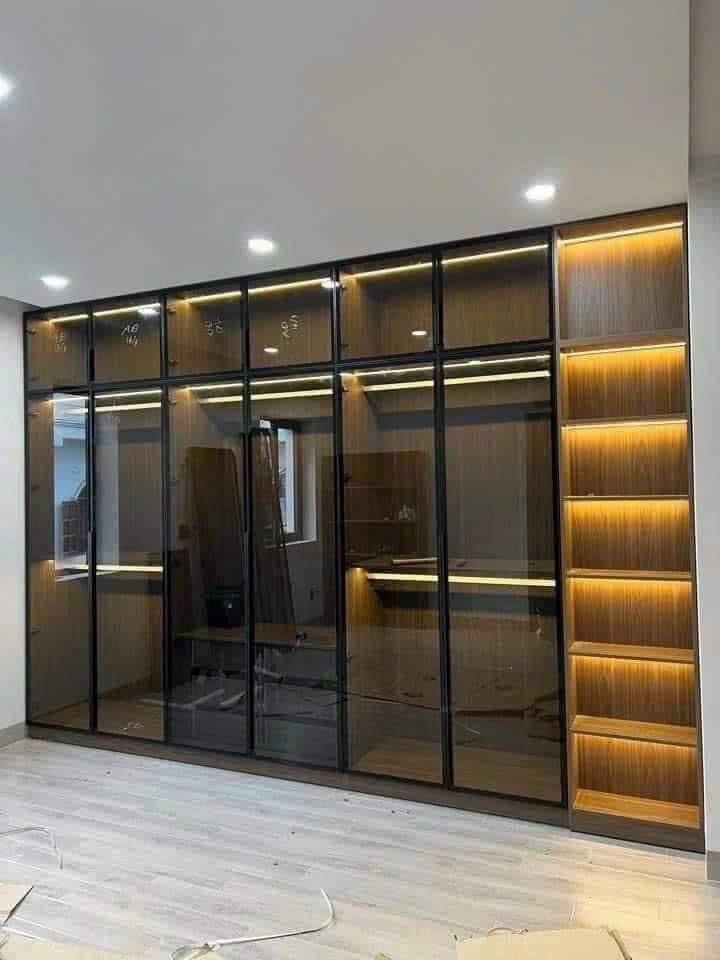 * Chất liệu : Thùng gỗ MDF - Cánh kính khung nhôm