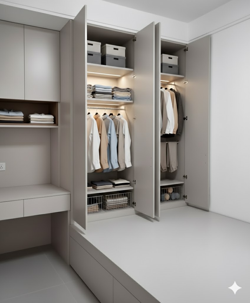 - Tủ áo : Ngang 1m6x55cmx2m5