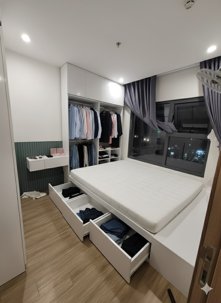- Tủ áo : Ngang 1m6x55cmx2m6